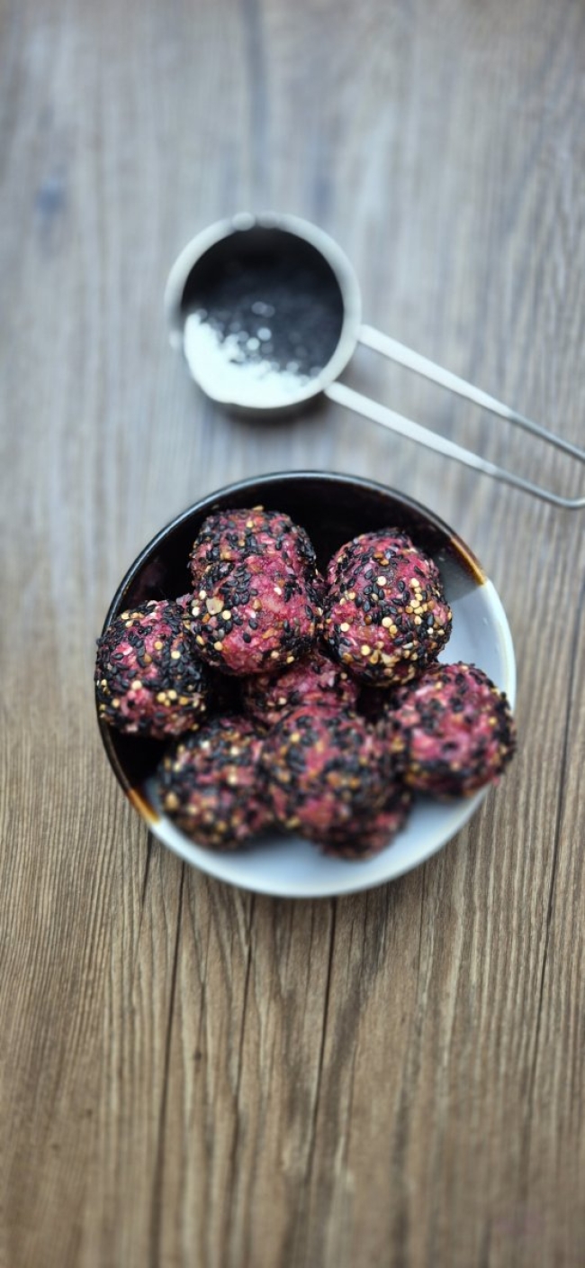 Le bénéfice : Le turbo naturel. Un coup de mou avant une séance ou besoin d'une concentration maximale en milieu de journée ? Ces petites bombes d'énergie sont vos meilleures alliées. La betterave apporte sa force minérale tandis que le mélange tahin-cacahuète offre une texture fondante qui soutient l'effort sans jamais saturer le palais. Un concentré de puissance sous un format nomade.